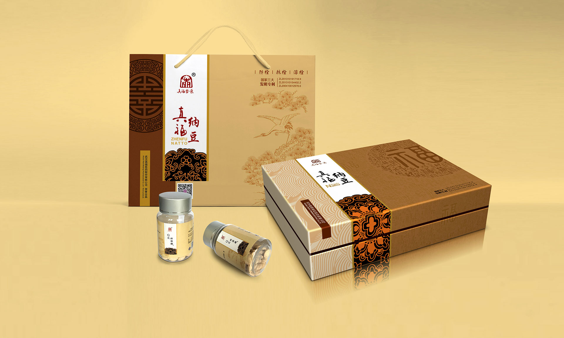 心腦血管疾病是人類(lèi)健康的頭號(hào)殺手,中國(guó)人的死亡80%就是心腦管疾病。武漢大學(xué)生命科學(xué)院通過(guò)現(xiàn)代生物技術(shù),在農(nóng)產(chǎn)品大豆中提煉出枯草桿菌研制成的真福納豆,獲得國(guó)家三項(xiàng)發(fā)明專(zhuān)利。該產(chǎn)品對(duì)緩解和輔助治療心腦血管疾病有著顯著的效果,同時(shí)不對(duì)人產(chǎn)生任何傷害。是一種綠色健康的產(chǎn)品。信立浩達(dá)設(shè)計(jì)團(tuán)隊(duì)對(duì)產(chǎn)品價(jià)值深度挖掘,在產(chǎn)品包裝設(shè)計(jì)上用中國(guó)傳統(tǒng)的“福祿壽禧、松鶴延年”文化來(lái)表達(dá),同時(shí)反復(fù)訴求:讓中國(guó)人多活十年!這樣產(chǎn)品的價(jià)值,通過(guò)福壽文化、松鶴文化得到了形象的傳遞,深受中老年人的心理認(rèn)同。