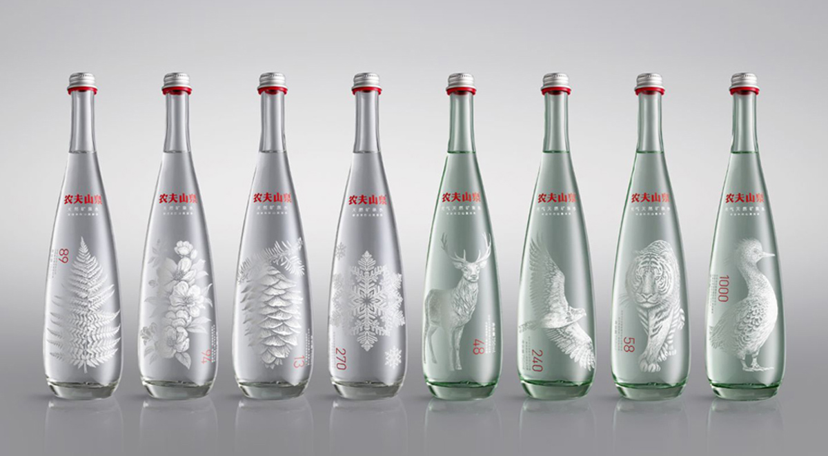 例如:農(nóng)夫山泉推出的高端水,在水的包裝上,農(nóng)夫山泉也彰顯了高逼格定位,由英國一個名為“Horse設(shè)計室”的設(shè)計公司設(shè)計,細(xì)長的玻璃瓶身,線條極為流暢,而瓶身包裝是8種長白山生態(tài)文化,彰顯了濃郁的自然人文氣質(zhì)。據(jù)了解,讓產(chǎn)品回歸自然,向自然生態(tài)致敬是本次產(chǎn)品在生產(chǎn)設(shè)計中所傳達(dá)出的人文理念。