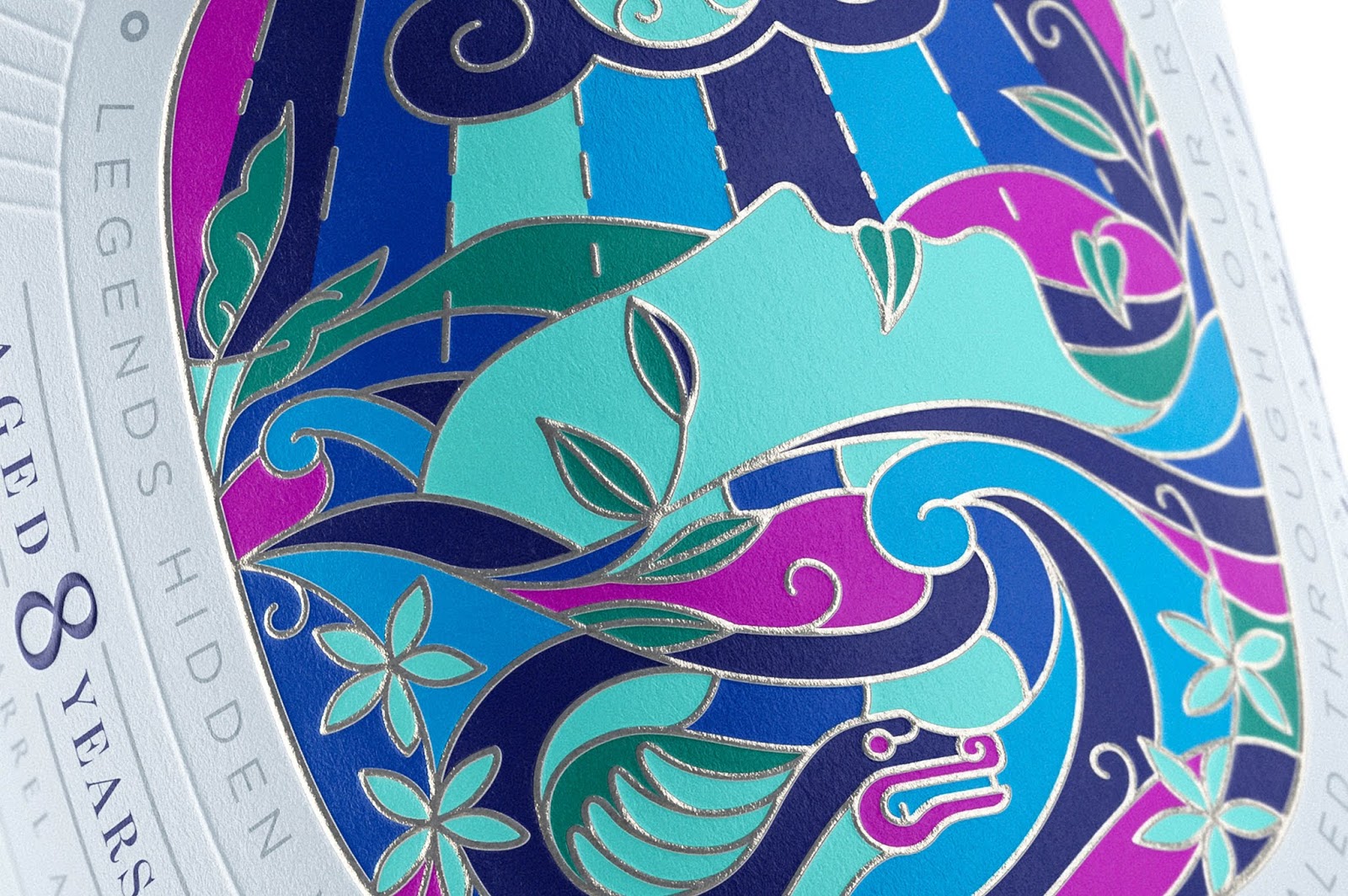 Cihuatan是一個來自薩爾瓦多的特制朗姆酒品牌。在納瓦特方言中,“Cihuatán”的意思是“女神熟睡的土地”。通過插圖刻畫鮮花綻放過程中的力量和美麗,通過女神睡顏表達(dá)女神的繁衍生息的力量。在工藝上“女神”的輪廓運用燙銀和凸紋的技術(shù),讓畫面有了些許立體感,增強畫面層次。色彩上,采用當(dāng)?shù)靥赜械呐屠渖钆浞绞?,讓文化的符號更加深入人心?/span>