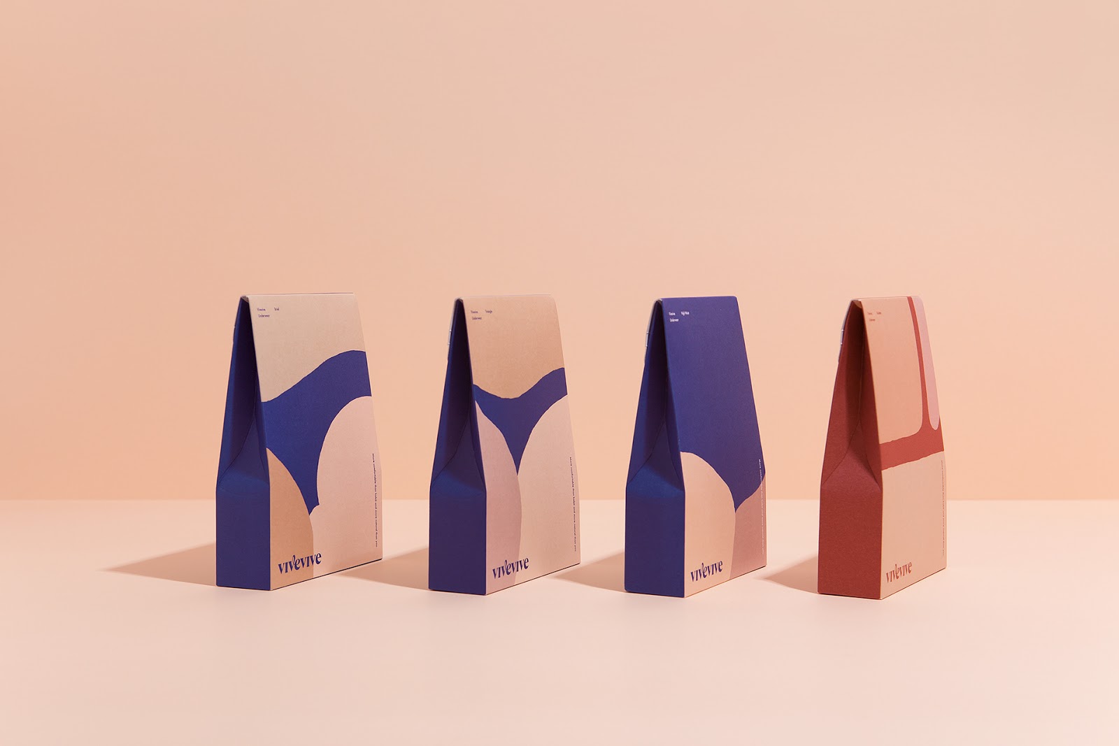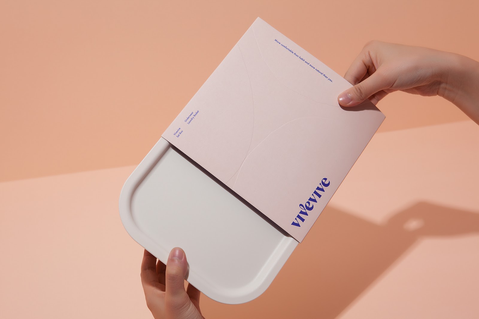 來自于韓國(guó)的CFC設(shè)計(jì)工作室為女性內(nèi)衣品牌vivevive做的視覺識(shí)別和包裝設(shè)計(jì)。最自然的身體是美的,CFC用抽象的手法描繪了女性美麗的身體曲線,也用此詮釋著身體最舒適的狀態(tài)。通過對(duì)比的大面積色塊拼接來描繪身體局部,很好地抓住了女性身體曲線的特征。又用了膚色的暗淺來描繪局部的光線變化。雖然非常抽象,但能引人聯(lián)想,識(shí)別度很高。