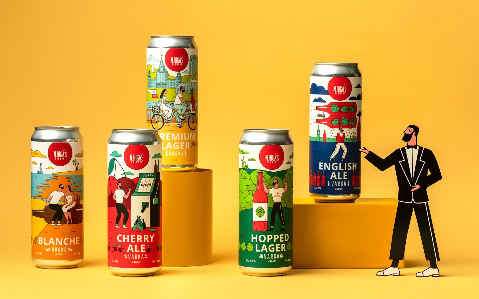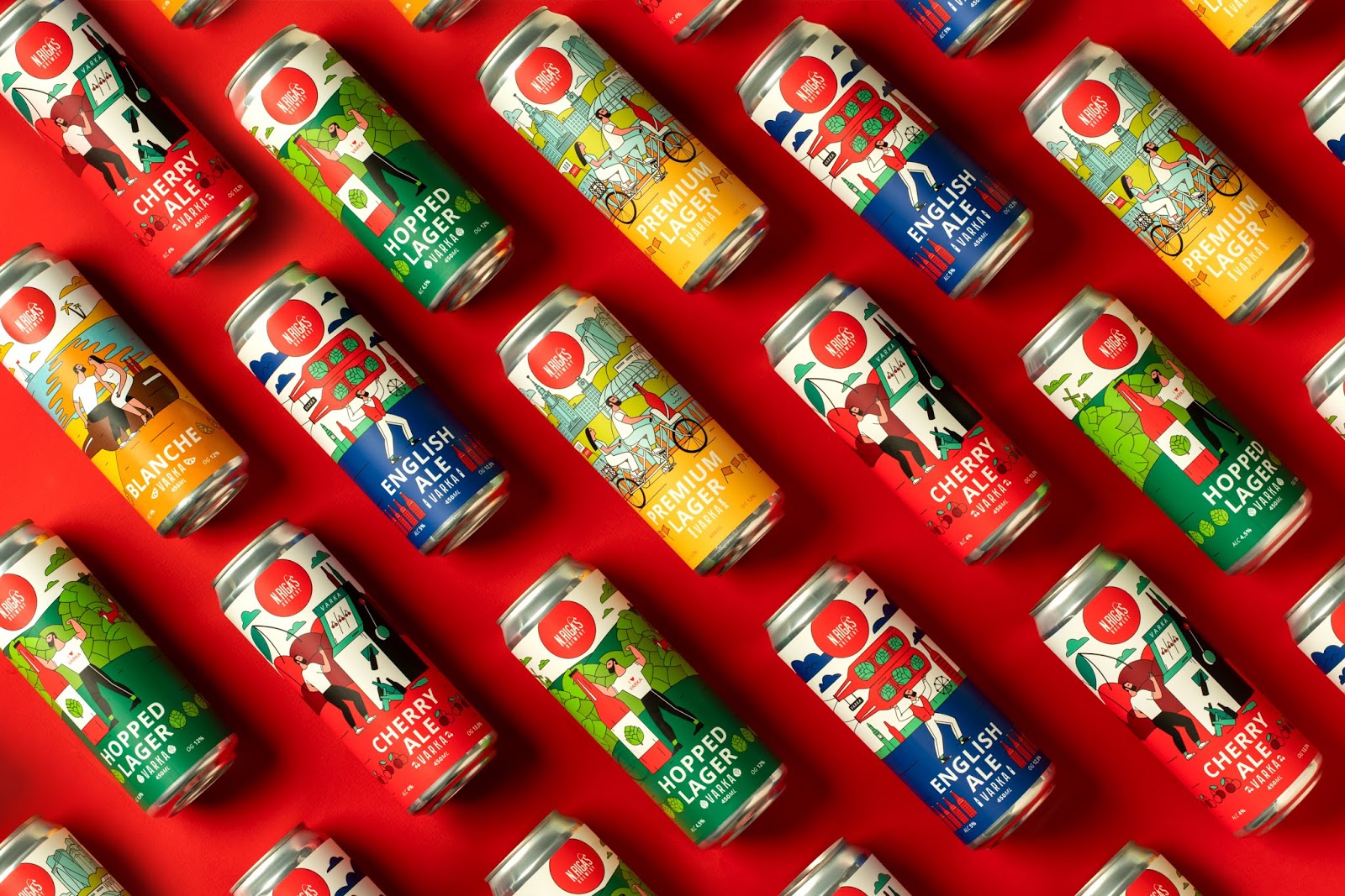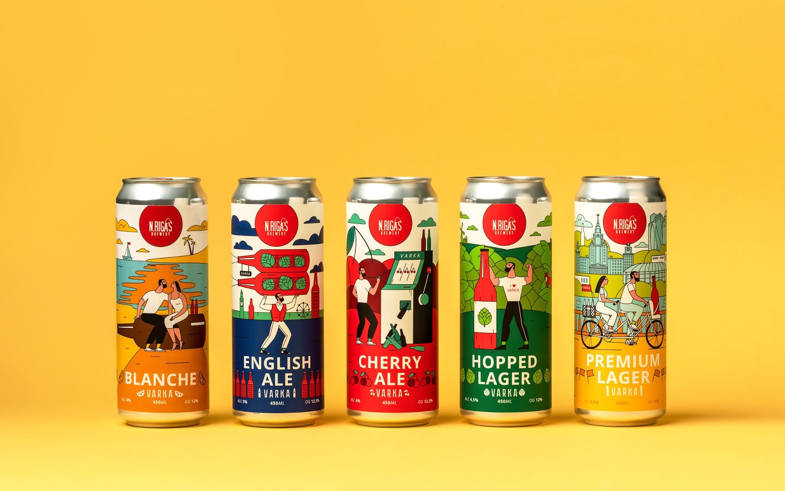 這是VARKA啤酒包裝設(shè)計,使用當下比較流行的插畫形式,描繪了商品在生活中的使用場景,用多種艷麗的顏色烘托出正向、多姿多彩的氛圍。