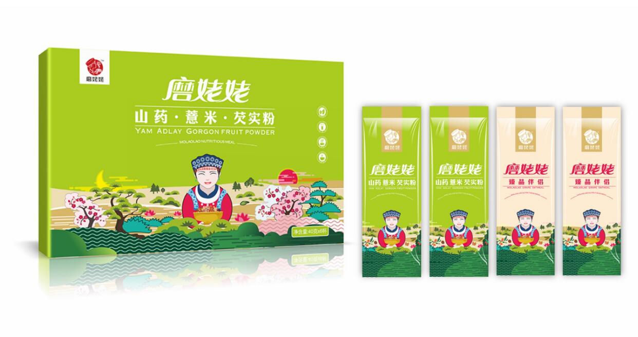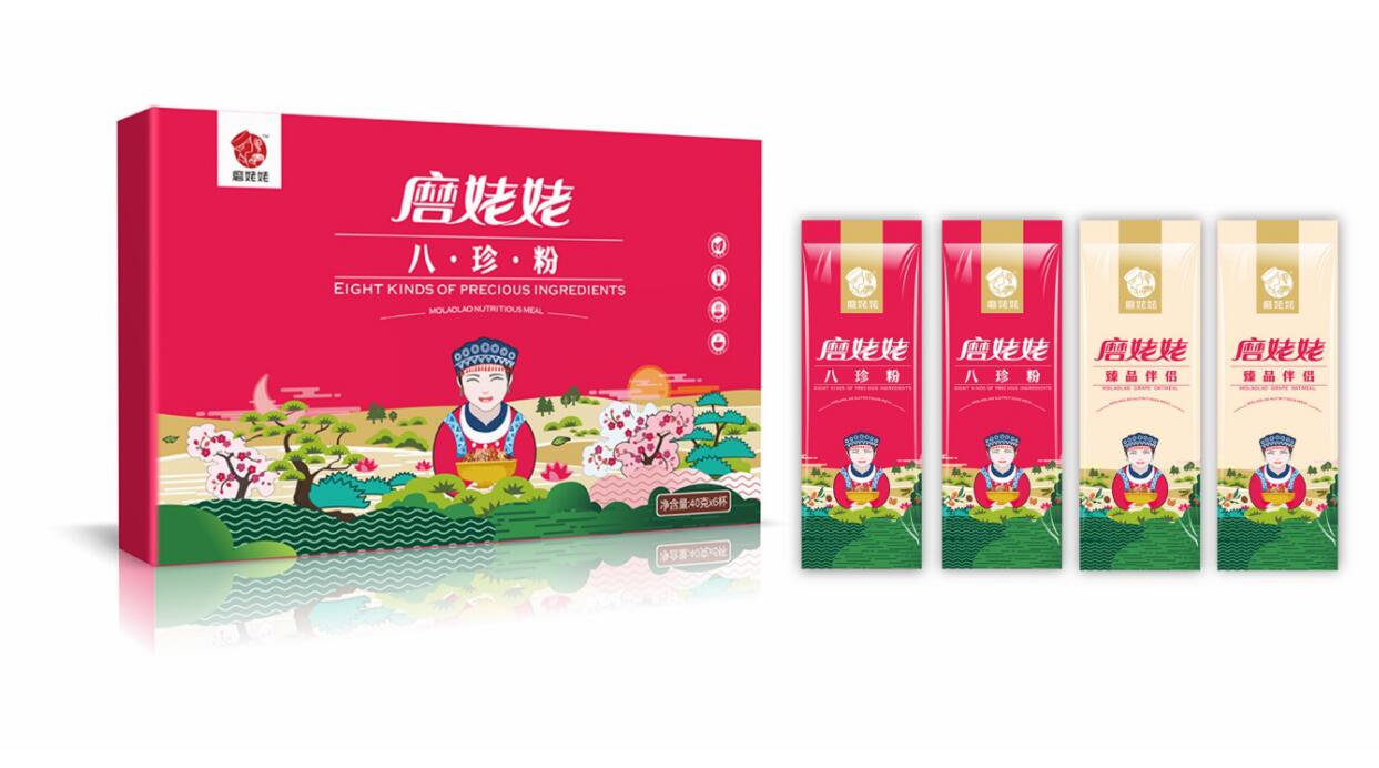 當(dāng)產(chǎn)品在市場上得到消費(fèi)者的認(rèn)同后,一個(gè)偶然的機(jī)會(huì),信立浩達(dá)與磨姥姥達(dá)成合作,為磨姥姥提供品牌形象設(shè)計(jì)、產(chǎn)品包裝設(shè)計(jì),用文創(chuàng)品牌的思維,塑造了磨姥姥新的品牌形象,45天內(nèi),我們從武漢到長沙,從長沙到武漢,經(jīng)過了大量的市場調(diào)研、腦力風(fēng)暴,挖掘了中國傳統(tǒng)食文化、養(yǎng)生文化,設(shè)計(jì)出了磨姥姥的品牌主畫面,品牌標(biāo)志、系列的產(chǎn)品包裝設(shè)計(jì),還有招商網(wǎng)站、招商畫冊(cè)、宣傳廣告、海報(bào)等:益元八珍營養(yǎng)早餐, 一天一杯磨姥姥,健康快樂一整天!山藥薏米芡實(shí),我要想吃就吃不長肉!紅豆薏米杏仁,我要貌美如花人人夸!核桃芝麻黑豆,養(yǎng)發(fā)烏發(fā)。武漢農(nóng)產(chǎn)品包裝設(shè)計(jì)公司信立浩達(dá)用品牌設(shè)計(jì)的力量協(xié)助磨姥姥在全國招商成功!