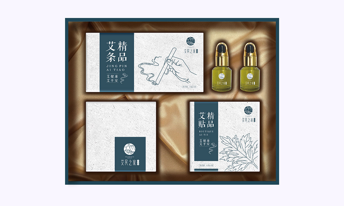 李時珍在《本草綱目》記載蘄艾是養(yǎng)生古方,這種隨處可見,每到端午家家戶戶門前都要懸掛的草本植物,在艾民之家成為健康、養(yǎng)生、綠色禮贈的高端品牌。我們接手艾民之家的品牌和包裝設計之后,首先是定位,艾民之家期望將這款產品打造成中高端的健康禮品,宣傳送禮送健康的概念。在這一方向的指引下,在眾多的蘄艾產品中,我們與客戶共同選擇了四款產品進行搭配,以滿足功能上的需求,其次是設計了艾民之家的品牌LOGO,logo將中國傳統(tǒng)國畫中的山、云、葉的符號通過現(xiàn)代創(chuàng)意設計手法,展現(xiàn)了蘄艾來自大自然,來自祖國傳統(tǒng)醫(yī)學寶庫。雖然傳統(tǒng),但不失現(xiàn)代時尚之風。品牌LOGO確定后,開始了產品的包裝設計,在創(chuàng)意設計上,選擇具有中國特色文化的白描手法,表現(xiàn)艾條、艾葉、李時珍的形象,讓產品具有文人氣息,精選棉質紋理紙體現(xiàn)出產品的質感,豎排的文字營造了《本草綱目》的場景,全系列產品包裝設計雖然古韻古樸,但依然顯得現(xiàn)代時尚之感!